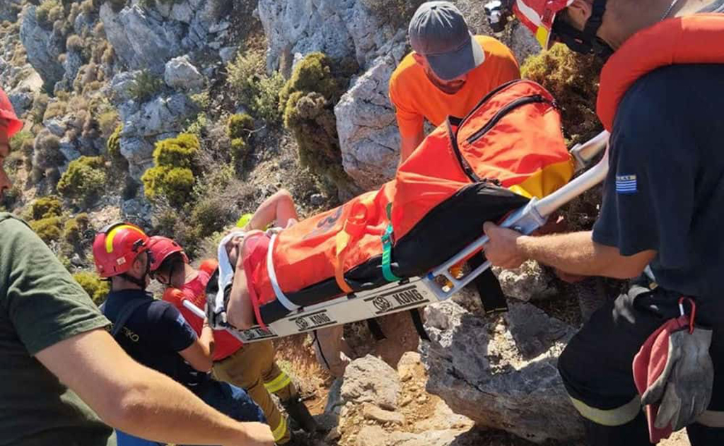 Απεγκλωβισμός και μεταφορά Ιταλού αναρριχητή που τραυματίστηκε στο πόδι κατά τη διάρκεια αναρρίχησης στη Σπηλιά Συκατής Καλύμνου