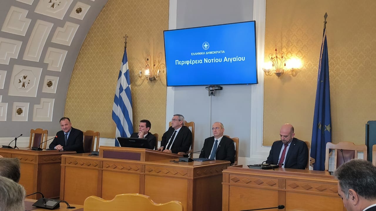 Σε σύσκεψη στην Περιφέρεια Νοτίου Αιγαίου με τους Υπουργούς Μετανάστευσης και Ασύλου κ. Δημήτρη Καιρίδη, Προστασίας του Πολίτη κ. Γιάννη Οικονόμου και τον Περιφερειάρχη Νοτίου Αιγαίου, κ. Γιώργο Χατζημάρκο, συμμετείχε ο Υφυπουργός Ναυτιλίας και Νησιωτικής Πολιτικής κ. Ιωάννης Παππάς.
