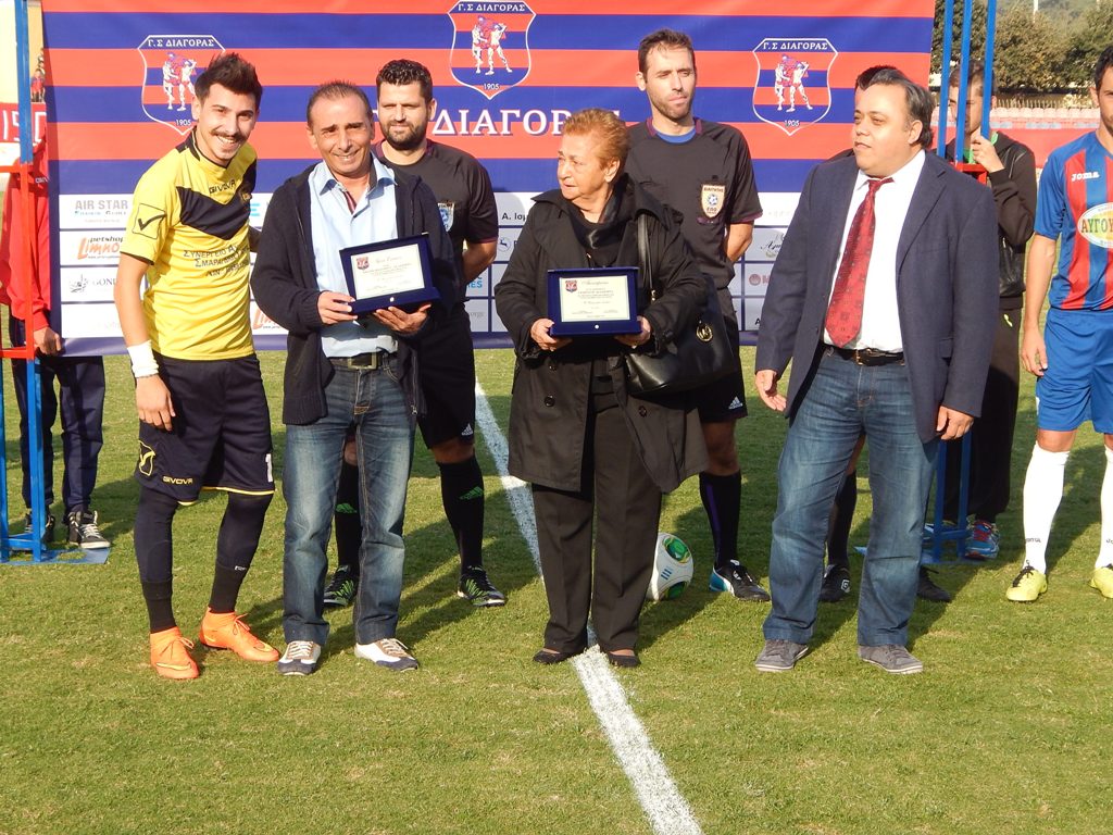 Οι δύο άνδρες είχαν φορέσει στο παρελθόν τη φανέλα του Διαγόρα, με τη διοίκηση των «κυανέρυθρων» να απονέμει τιμητικές πλακέτες στον Άκη Δελαπόρτα, στη σύζυγο του πατέρα του, ενώ το «παρών» στη λιτή τελετή που έγινε πριν την έναρξη του αγώνα, έδωσε φυσικά και ο αρχηγός του Φοίβου, Γιώργος Δελαπόρτας.