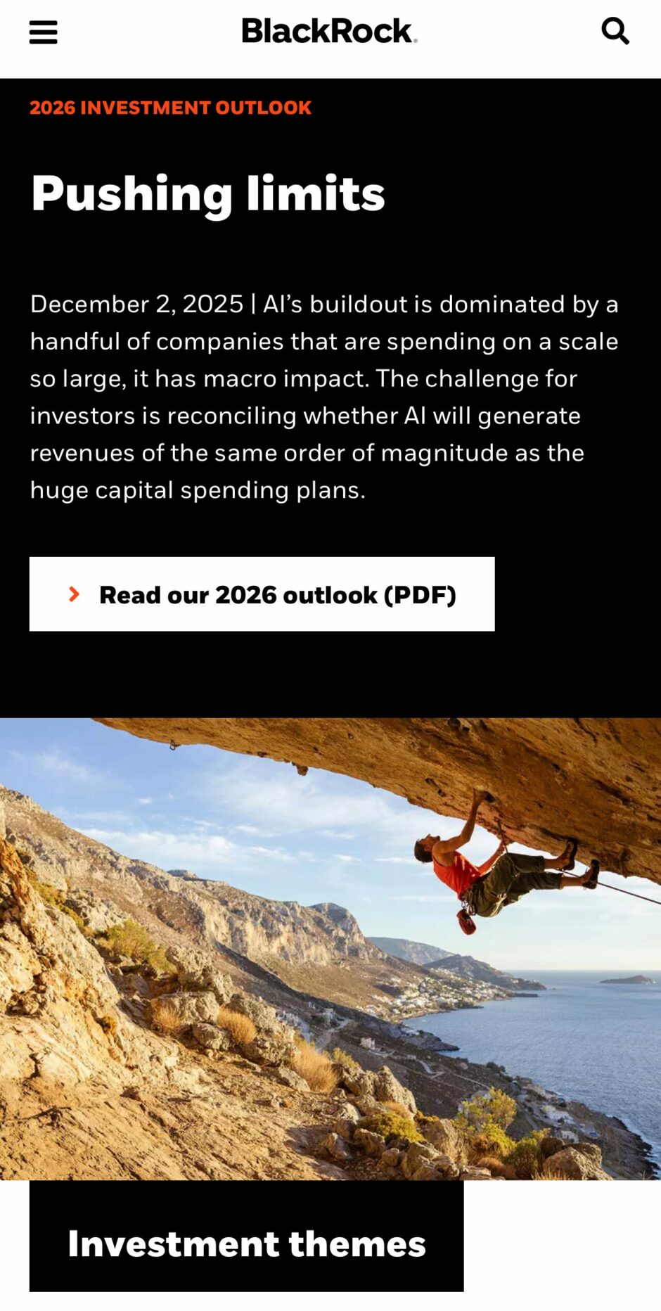 BLACKROCK Investment Institute με τίτλο «Pushing Limits – Ξεπερνώντας τα Όρια», η κεντρική εικόνα του δημοσιεύματος είναι μια φωτογραφία αναρριχητή στα βράχια της Καλύμνου.