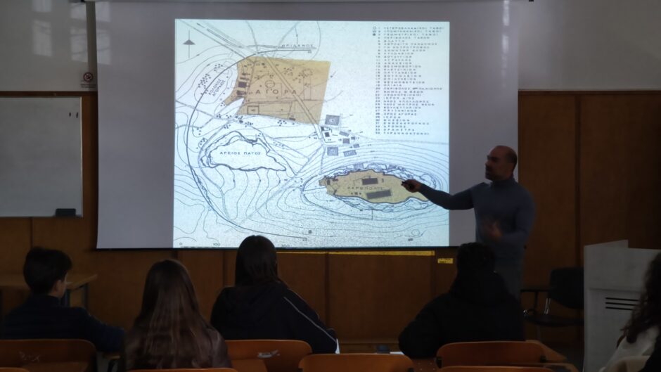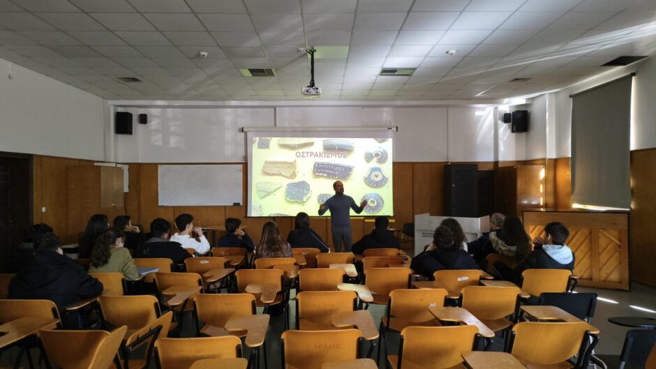 Ο κ. Μανώλης Στεφανάκης, καθηγητής της Κλασικής Αρχαιολογίας και Νομισματικής, ενημέρωσε την ομάδα για τις δυσκολίες και τα προβλήματα που αντιμετωπίζουν οι αρχαιολόγοι και οι συνεργάτες τους κατά τη φάση των ανασκαφών, αναδεικνύοντας τις ιδιαίτερες απαιτήσεις του έργου τους και εμπνέοντας τους μαθητές να εστιάσουν στην αναζήτηση πιθανών λύσεων μέσα από την αξιοποίηση της τεχνολογίας. Παράλληλα, ο κ. Σπύρος Συρόπουλος, καθηγητής της Αρχαίας Ελληνικής Γραμματείας, παρουσίασε τη στενή και διαχρονική σχέση της Αρχαιολογίας με την Αρχαία Ελληνική Γραμματεία, προσφέροντας στους μαθητές μια ευρύτερη και διεπιστημονική προσέγγιση του θέματος και βοηθώντας τους να κατανοήσουν βαθύτερα το ιστορικό, πολιτισμικό και επιστημονικό πλαίσιο του αντικειμένου που καλούνται να μελετήσουν.