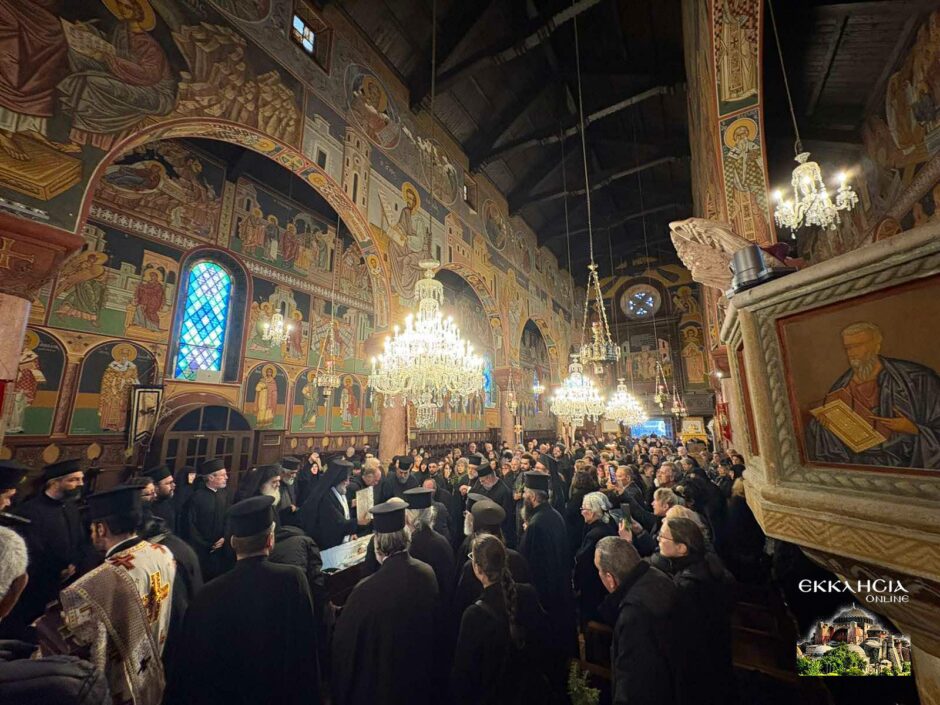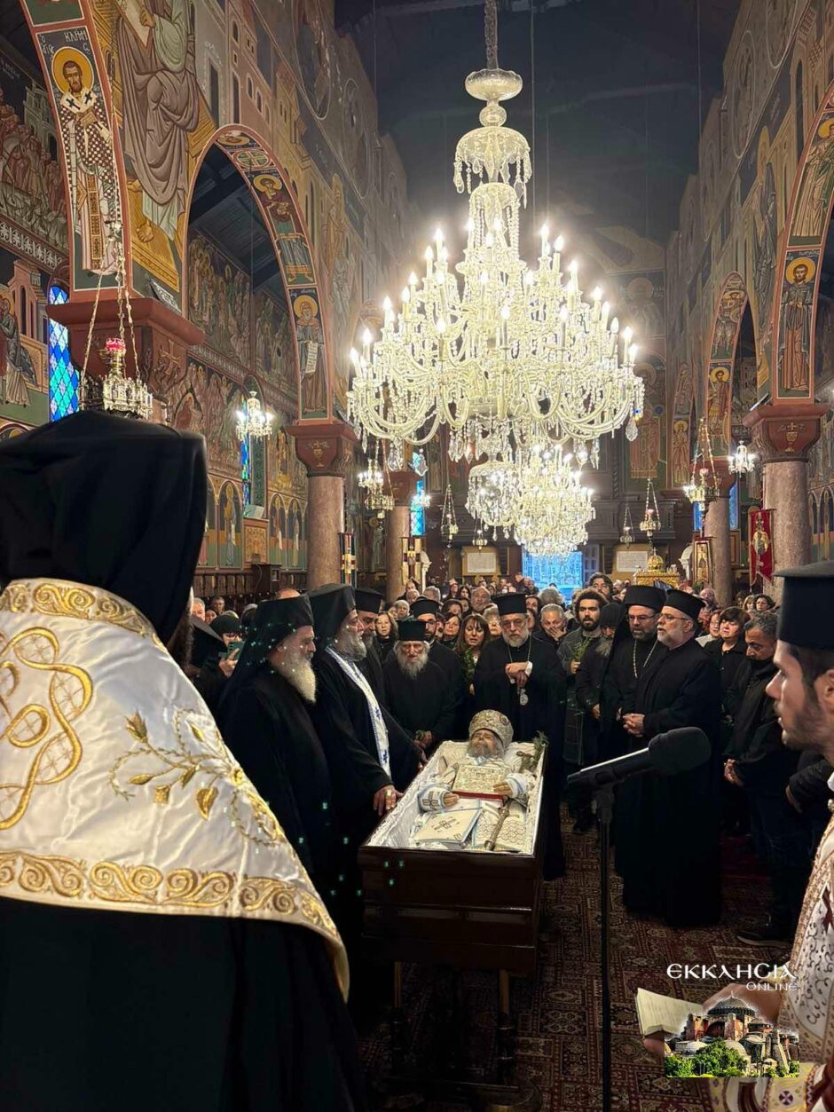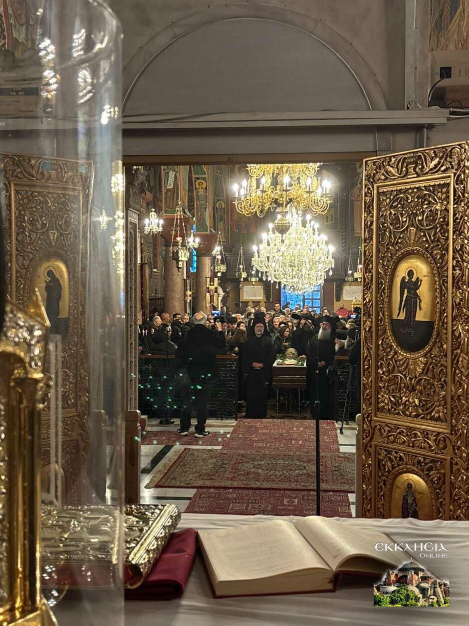 Το σκήνωμα έχει τεθεί σε λαϊκό προσκύνημα και συρρέει συνεχώς πλήθος πιστών για να λάβει την ευχή του Μακαριστού Ιεράρχου . Ο Ιερός Ναός θα παραμείνει, ως είθισται, ανοικτός καθ’ όλη τη διάρκεια της νύχτας, προκειμένου οι πιστοί να αποδώσουν τον οφειλόμενο σεβασμό και να συμμετάσχουν στην κοινή προσευχή.