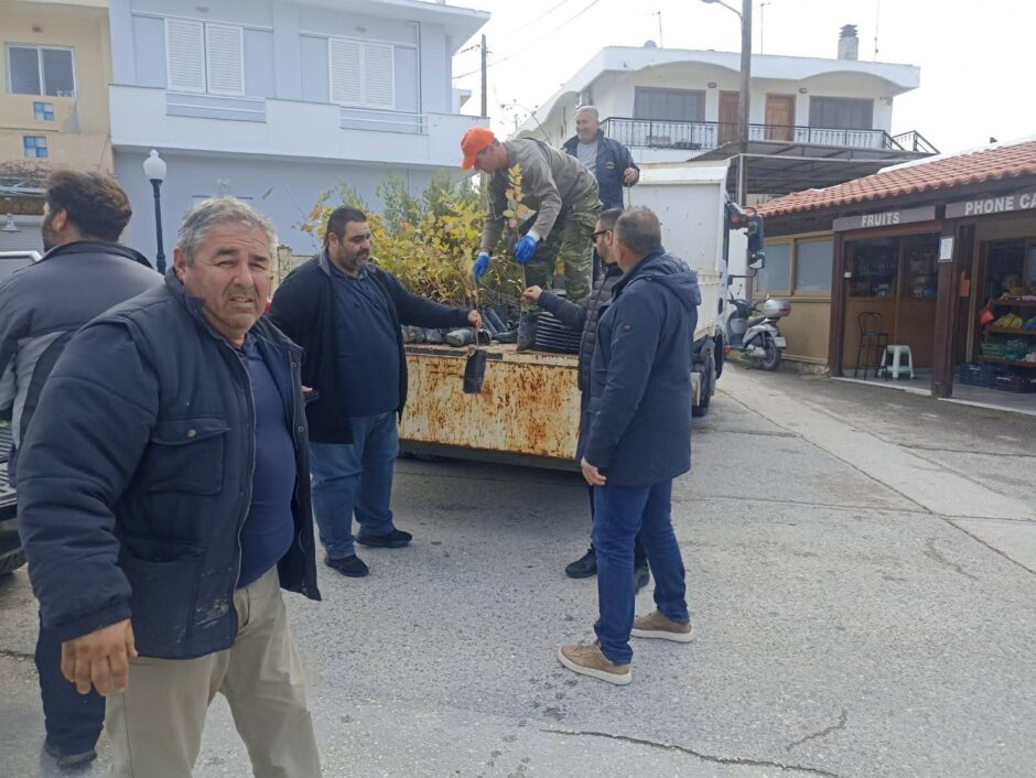 Την παράδοση έκαναν ο Πρόεδρος του Περιφερειακού Φυτωρίου Νοτίου Αιγαίου, κ. Μιχάλης Λουλούς, και ο Αντιπρόεδρος, κ. Κωνσταντίνος Χατζηχριστοδούλου, οι οποίοι παρέδωσαν 150 πικροδάφνες, 100 πεύκα, 100 κυπαρίσσια, 50 ευκαλύπτους, 30 αγγελικές, 30 κόρνους, 20 βραχυχίτωνες, 20 ακακίες Κωνσταντινουπόλεως, καθώς και 500 μέτρα σωλήνα άρδευσης για την υποστήριξη του ποτίσματος.