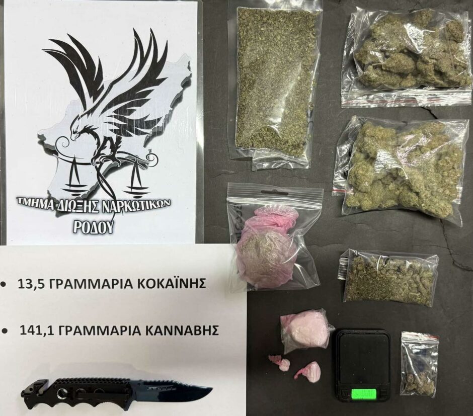 Συνελήφθησαν χθες (Τετάρτη 18 Μαρτίου 2026) στη Ρόδο, από αστυνομικούς του Τμήματος Δίωξης Ναρκωτικών της Υποδιεύθυνσης Δίωξης και Εξιχνίασης Εγκλημάτων Ρόδου, 21χρονος ημεδαπός και 28χρονη αλλοδαπή σε βάρος των οποίων σχηματίσθηκε δικογραφία για τα κατά περίπτωση αδικήματα της κατοχής – αποθήκευσης – διακίνησης ναρκωτικών ουσιών και παράνομης οπλοκατοχής.