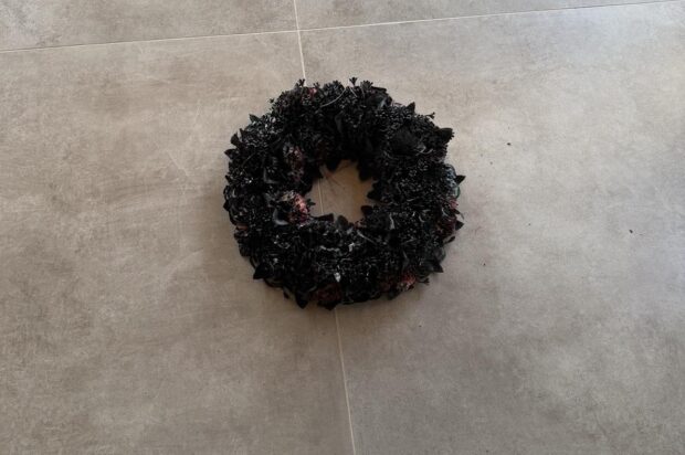 Στην κεντρική είσοδο βρέθηκε μαύρο στεφάνι.