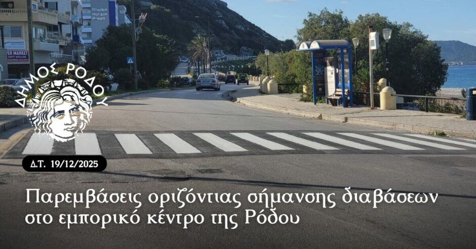 Στο πλαίσιο της υλοποίησης του έργου «Οριζόντια σήμανση διαβάσεων στο περιμετρικό οδικό δίκτυο του εμπορικού ιστού της πόλεως Ρόδου», το οποίο χρηματοδοτείται από το Ταμείο Ανάκαμψης, έχουν ξεκινήσει οι εργασίες ανανέωσης των υφιστάμενων διαβάσεων στο βόρειο τρίγωνο της Ρόδου.