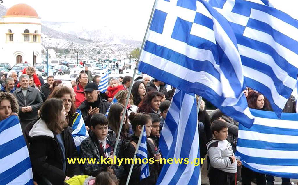 Με μεγάλη επιτυχία, πολύ κόσμο , με ελληνικές σημαίες, συνθήματα και συνεχή χειροκροτήματα κατά τη διάρκεια των ομιλιών πραγματοποιήθηκε σήμερα Κυριακή 20 Ιανουαρίου 2019 στις 12.00 το μεσημέρι, η εκδήλωση -συλλαλητήριο-ειρηνική διαμαρτυρία υπέρ της Μακεδονίας υπό την αιγίδα της Ιερά Μητροπόλεως Καλύμνου.