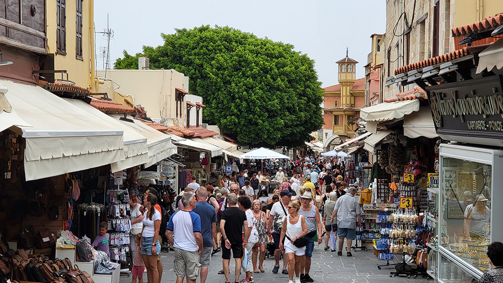 Οικονομικές απώλειες μετρούν οι καταστηματάρχες της Μεσαιωνικής Πόλης. Μπορεί η κίνηση να είναι αυξημένη και η αγορά να κατακλύζεται από κόσμο νυχθημερόν, τα ταμεία όμως γεμίζουν με δυσκολία. Μειωμένοι έως 15% είναι οι τζίροι των καταστημάτων, γεγονός που αποδίδεται στην «εγκράτεια» των τουριστών, οι οποίοι παζαρεύουν το κάθε τι.