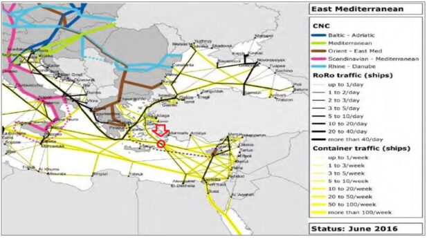 Οι θαλάσσιοι αυτοί διάδρομοι που περνούν από τη Ρόδο και συνδέουν την Αδριατική Θάλασσα, το Ιόνιο και το Αιγαίο Πέλαγος, τη Μαύρη Θάλασσα και ανατολικά τη Κύπρο και το Σουέζ, είναι οι κυριότεροι άξονες μεταφοράς αγαθών της Ευρώπης. Μάλιστα τα νέα γεωπολιτικά δεδομένα τους καθιστούν και τους πλέον ανταγωνιστικούς οικονομικά. Η μετατροπή της Ρόδου ως κόμβου για την