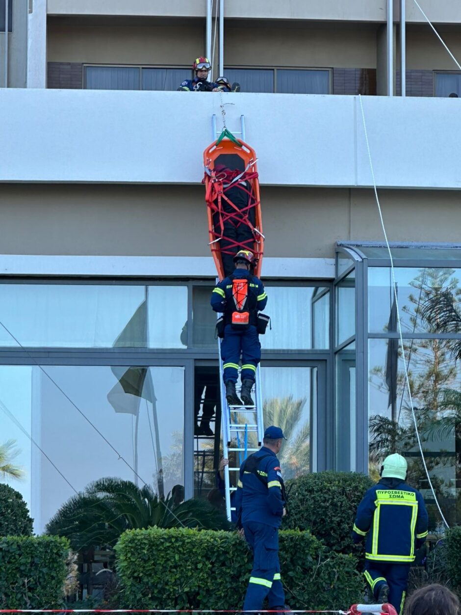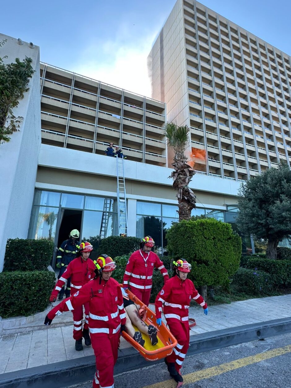 Άσκηση ετοιμότητας πραγματοποιήθηκε την Παρασκευή 17 Οκτωβρίου 2025 και ώρα 11:00, στις εγκαταστάσεις του εμβληματικού ξενοδοχείου Rodos Palace, με σκοπό την ενίσχυση της επιχειρησιακής ετοιμότητας και της συνεργασίας όλων των εμπλεκόμενων φορέων.