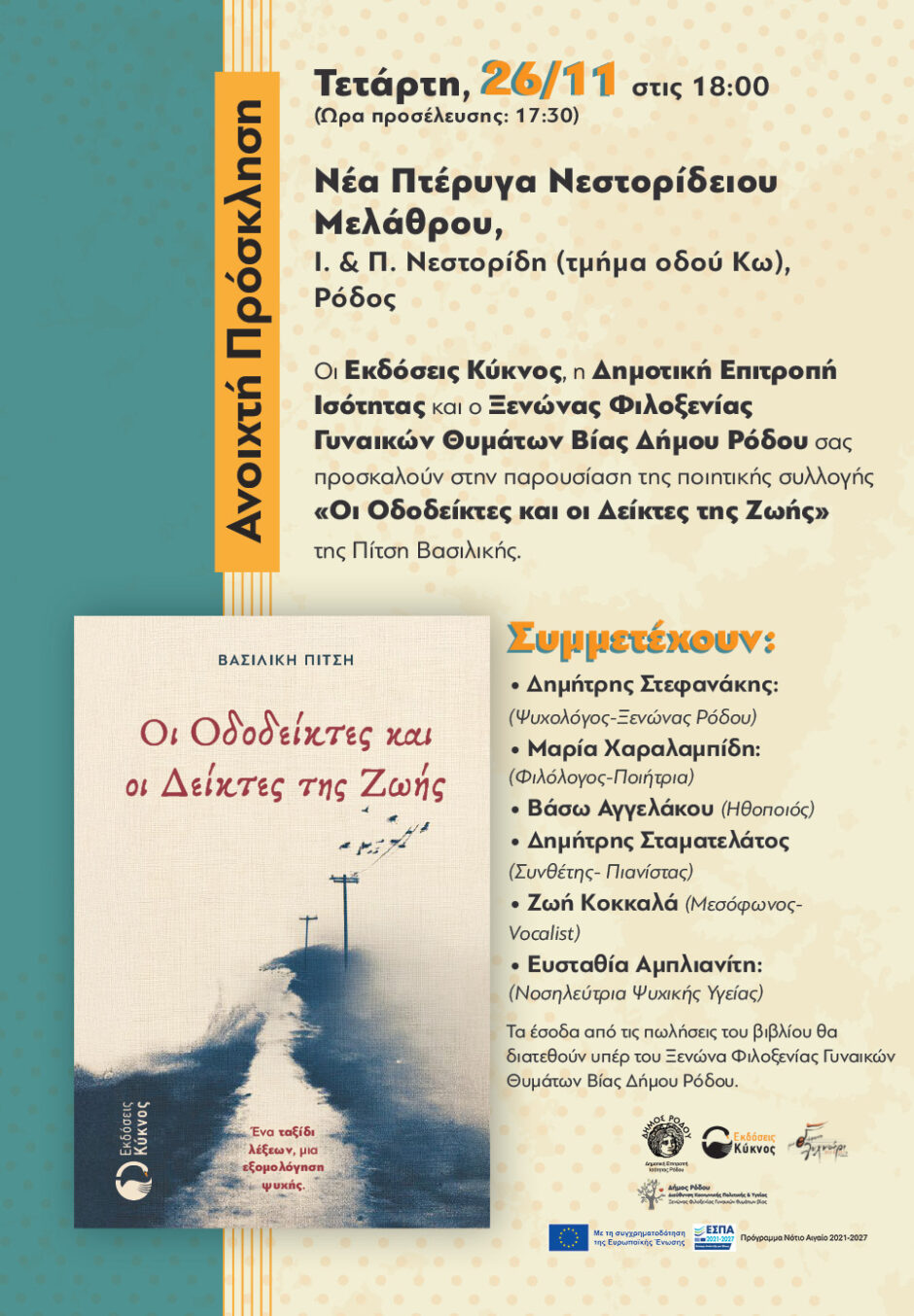 Την Τετάρτη 26 Νοεμβρίου – παρουσίαση ποιητικής συλλογής στο Νεστορίδειο Μέλαθρον