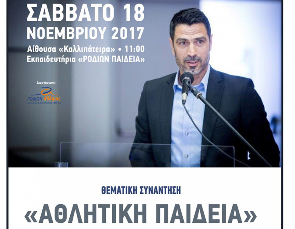 Μια ξεχωριστή θεματική συνάντηση διοργανώνει το αθλητικό κέντρο «ΡΟΔΙΩΝ άθλησις» το Σάββατο 18 Νοεμβρίου και ώρα 11:00 π.μ. στη αίθουσα «Καλλιπάτειρα» των Εκπαιδευτηρίων ...