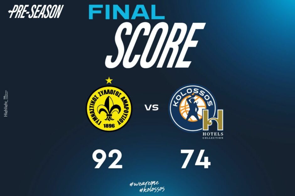 Την ήττα με σκορ 92-74 γνώρισε ο Κολοσσός στο τελευταίο του φιλικό παιχνίδι προετοιμασίας στο Μαρούσι. Η διαφορά ανάμεσα στις δύο ομάδες μεγάλωσε στο τελευταίο δεκάλεπτο, με ...
