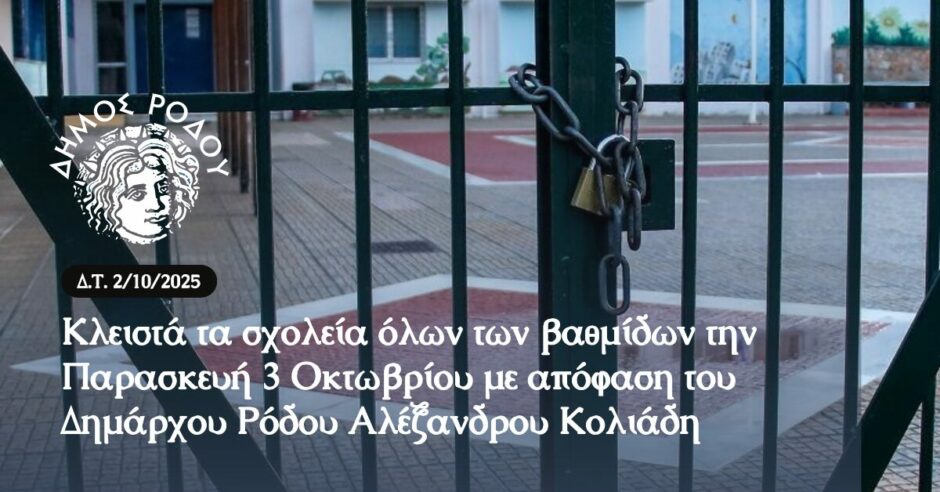 Την Δευτέρα 6 Οκτωβρίου θα πραγματοποιηθεί η συνεδρίαση της Δημοτικής Επιτροπής . Η συνεδρίαση θα ξεκινήσει στις 10:00 θα διεξαχθεί με μικτό τρόπο,για τη λήψη απόφασης επί των θεμάτων που ...
