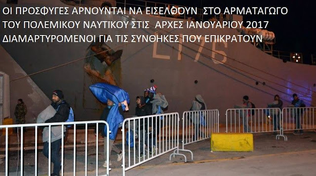 Οι εικόνες που παραθέτουμε στην ιστοσελίδα της Ένωσης Αθηνών είναι ενδεικτικές των όσων καταγγέλλουμε και προς επίρρωσή τους, ακόμα και οι πρόσφυγες που έφθασαν στην χώρα μας λόγω του πολέμου στην Συρία, αρνήθηκαν να μπουν τον περασμένο Ιανουάριο σε αρματαγωγό πλοίο του Πολεμικού Ναυτικού στο λιμάνι της Μυτιλήνης, διαμαρτυρόμενοι για τις συνθήκες που επικρατούσαν !!!