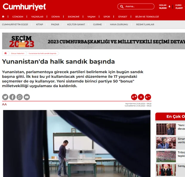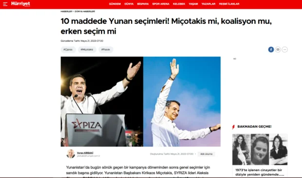 Στις ελληνικές εκλογές είναι στραμμένο το ενδιαφέρον και του τουρκικού Τύπου που γράφει για τα σενάρια μετά το κλείσιμο της κάλπης και για τη διαδικασία που διεξάγεται στη χώρα μας.
