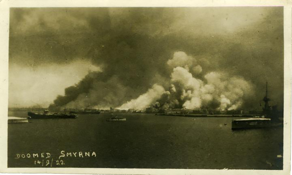 Κεντρική φωτ.: Η Σμύρνη καίγεται, 14 Σεπτεμβρίου 1922. Συλλογή Λουκά Π. Χριστοδούλου. Πηγή φωτ.: Μουσείο Μπενάκη. Από την έκθεση «ΜΙΚΡΑ ΑΣΙΑ: Λάμψη – Καταστροφή – Ξεριζωμός – Δημιουργία» που είχε φιλοξενηθεί στο Μουσείο Μπενάκη.