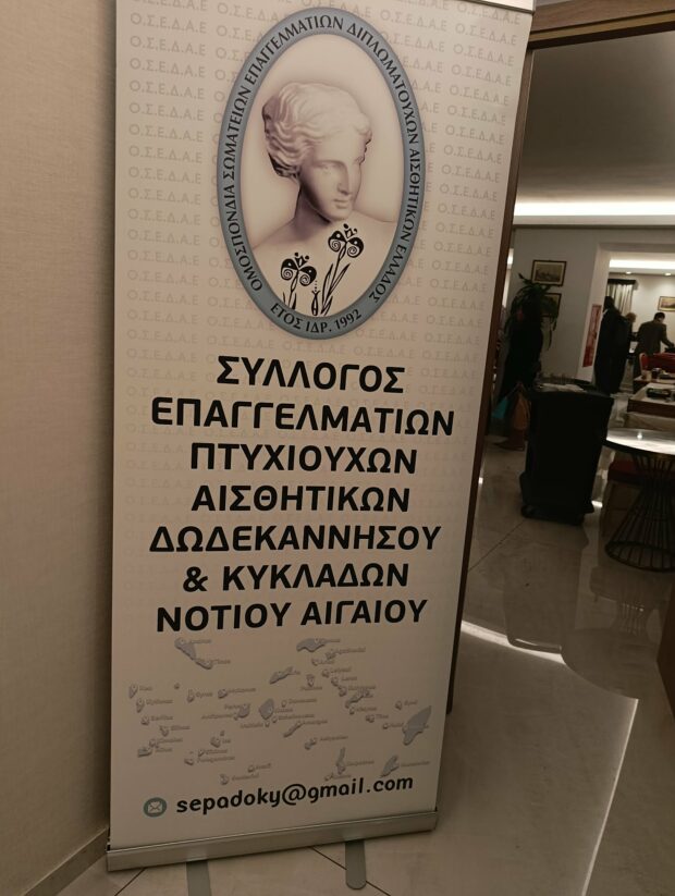 Στις 15 Φεβρουάριου 2026 διεξήχθη στη Ρόδο στο ξενοδοχείο ΑΚΑΝΤΙΑ Επιστημονική Ημερίδα και κοπή πίττας του Συλλόγου Επαγγελματιών Πτυχιούχων Αισθητικών Δωδεκανήσου & Κυκλάδων Νοτίου Αιγαίου