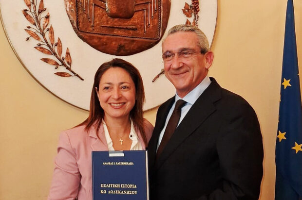 Απαντά επίσης για τη σχέση με τον Δήμο Κω, θέτει ως στρατηγική προτεραιότητα την επιστροφή του Τέλους Ανθεκτικότητας στα νησιά και επενδύει πολιτικά στον άξονα «νερό -φυσικοί πόροι- βιώσιμος μετασχηματισμός».