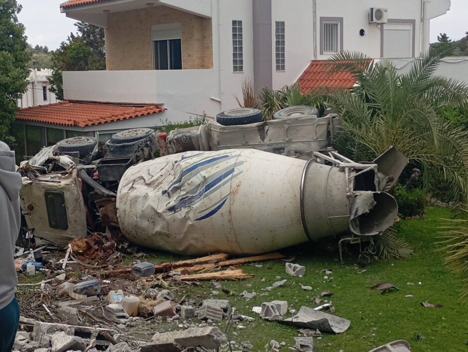 Στο νοσοκομείο της Ρόδου μεταφέρθηκε ο οδηγός της μπετονιέρας που ανατράπηκε στην περιοχή Τρεις.