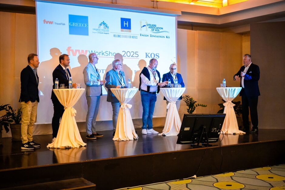 Για τις τάσεις στη γερμανική αγορά, τα σχέδιά τους για το 2026, με προτάσεις προς τους ξενοδόχους και προορισμούς μίλησαν οι: κ. Oliver Grosse-Kleiman – All Tours Director Contracting Greece & Longhaul, κ. Robin Brückner – TUI Group, Head of Product Greece & Cyprus, κ. Reinhard Stadlober – Dertour Group, Head of Contracting Greece & Cyprus, κ. Hicabi Ayhan – Coral/Ferien Touristik, Direktor Product Management, κ. Lars Ludwig – LMX CEO, κ. Christian Payr – Vtours, Director Product Management, κ. Peter Strub, Studiosus COO και ο κ. Detlev Geiser που παρουσίαση τα πλάνα της Aegean στη Γερμανική αγορά.