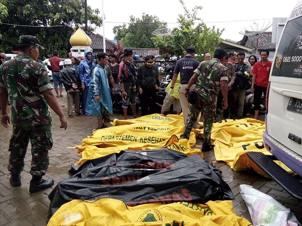 Οι εικόνες από τον όλεθρο που έπληξε την πόλη της Ινδονησίας προκαλούν σοκ, καθώς εκτός των 222 νεκρών, άλλα 843 άτομα έχουν μεταφερθεί στα νοσοκομεία, ορισμένα εκ των οποίων σοβαρά, και άλλα 28 αγνοούνται. Η πόλη Sunda Strait πάντως έχει κυριολεκτικά ισοπεδωθεί σε ένα μεγάλο ποσοστό και ιδιαίτερα στις παραλιακές συνοικίες της. Δρόμοι έχουν κατακλυστεί από τόνους λάσπης και δομικών υλικών, σπίτια έχουν καταστραφεί ολοσχερώς, ενώ οι σακούλες με τα πτώματα που είναι διάσπαρτα σε πολλά σημεία, ενισχύουν το δράμα των κατοίκων, οι οποίοι ήταν εντελώς απροετοίμαστοι και ανίσχυροι να αντιμετωπίσουν τη μεγάλη τραγωδία που τους βρήκε.
