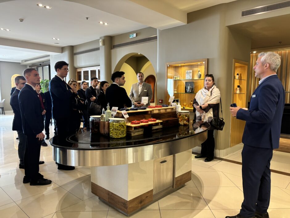 Κατά τη διάρκεια της επίσκεψης, οι σπουδαστές είχαν την ευκαιρία να γνωρίσουν σε πραγματικές συνθήκες τη λειτουργία μιας σύγχρονης ξενοδοχειακής μονάδας υψηλών προδιαγραφών. Μέσα από οργανωμένες παρουσιάσεις και επιτόπια παρατήρηση, ενημερώθηκαν για κρίσιμους τομείς όπως το Room Division, το Food & Beverage, η λειτουργία της κουζίνας και η διαχείριση αποθηκών, αποκτώντας πολύτιμες γνώσεις και πρακτική αντίληψη της καθημερινής λειτουργίας ενός ξενοδοχείου.