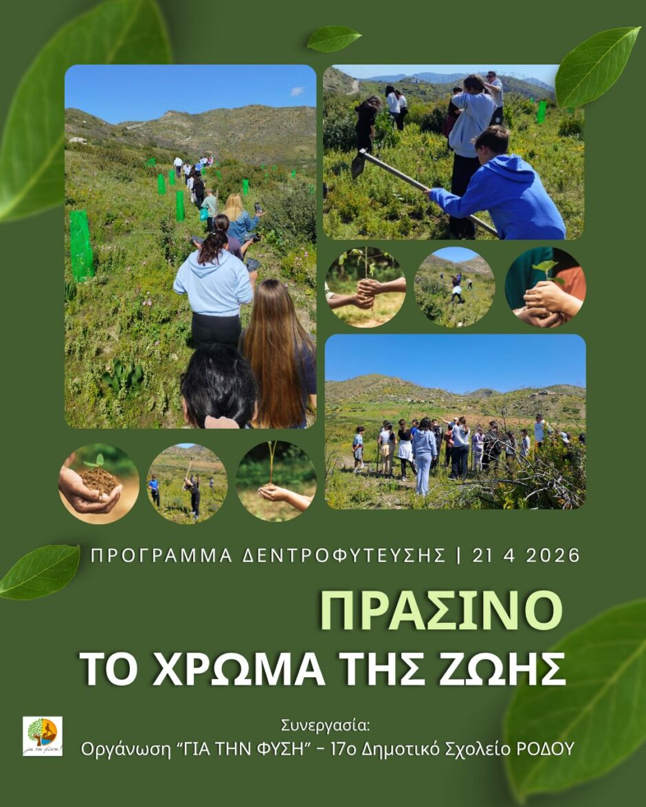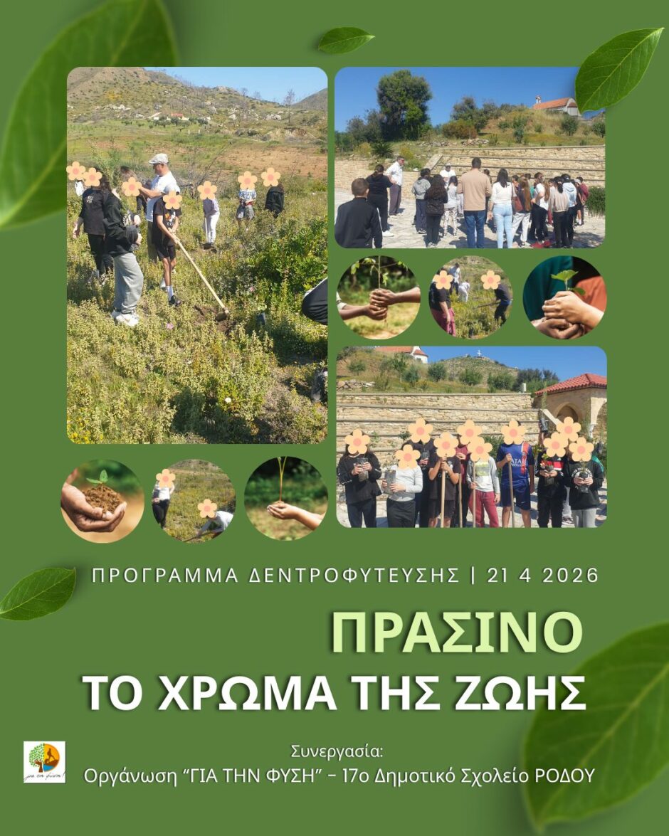 Με αυτό το αισιόδοξο και βαθιά συμβολικό μήνυμα, πραγματοποιήθηκε με επιτυχία δράση δεντροφύτευσης στην περιοχή της Ιεράς Μονής Παναγίας Υψενής στη Ρόδο, με τη συμμετοχή των μαθητών και μαθητριών της Ε’ και της ΣΤ’ τάξης του 17ου Δημοτικού Σχολείου Ρόδου, σε συνεργασία με την οργάνωση «Για τη Φύση».