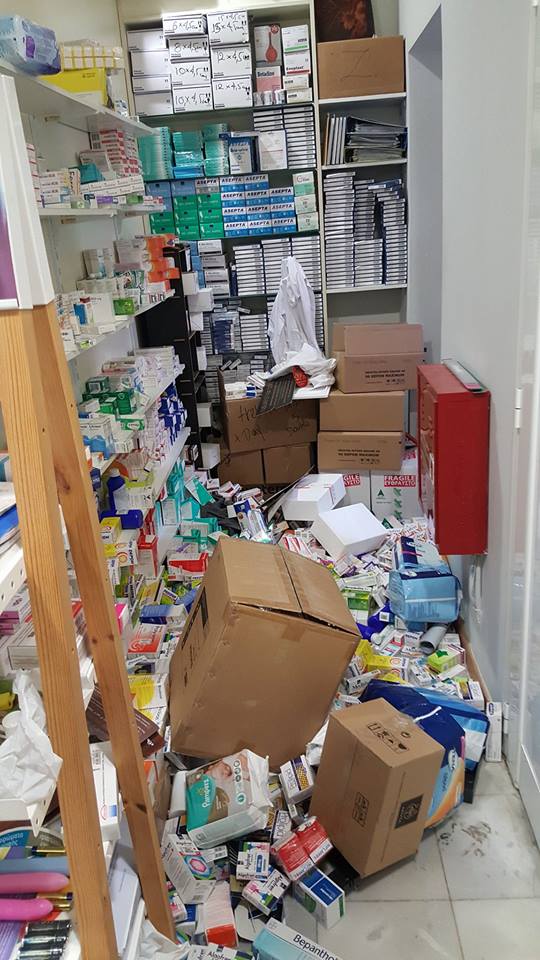 Το θετικό της υπόθεσης είναι ότι τα φαρμακεία, αλλά σε γενικές γραμμές και τα περισσότερα κτίσματα του νησιού, άντεξαν. Οι υλικοτεχνικές και κτιριακές υποδομές, πλην ολίγων εξαιρέσεων, ανταπεξήλθαν στο τρομερό κτύπημα του σεισμού. Υπάρχουν βέβαια μικρές ρωγμές, αλλά και μεγαλύτερες καταστροφές σε τοίχους, οροφές και δάπεδα, χωρίς όμως να εμπνέουν, από ότι φαίνεται ως τώρα, ιδιαίτερη ανησυχία. Βλάβες σε ραφιέρες, συρταριέρες, έπιπλα, γόνδολες, σιδερένια ρολά, κουφώματα και λοιπό εξοπλισμό των καταστημάτων έχουν επίσης παρατηρηθεί, δίχως όμως να συνιστούν ανυπέρβλητα εμπόδια για την λειτουργία των φαρμακείων.