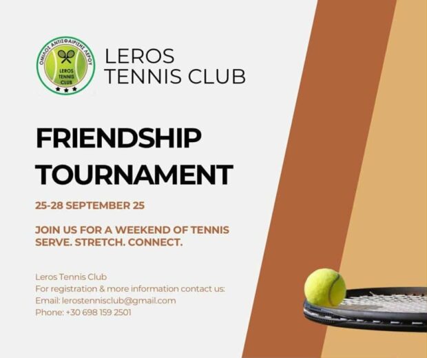 «Το αθλητικό μας σωματείο Leros Tennis Club τα τελευταία χρόνια στο πλαίσιο της καλής συνεργασίας, του αμοιβαίου σεβασμού και για την εξυπηρέτηση της ανάγκης για αγώνες των ενηλίκων τμημάτων μας, διοργανώνει και φέτος για τρίτη συνεχή χρονιά  το προγραμματισμένο τουρνουά για γυναίκες, ‘’Leros Friendship Cup’’.