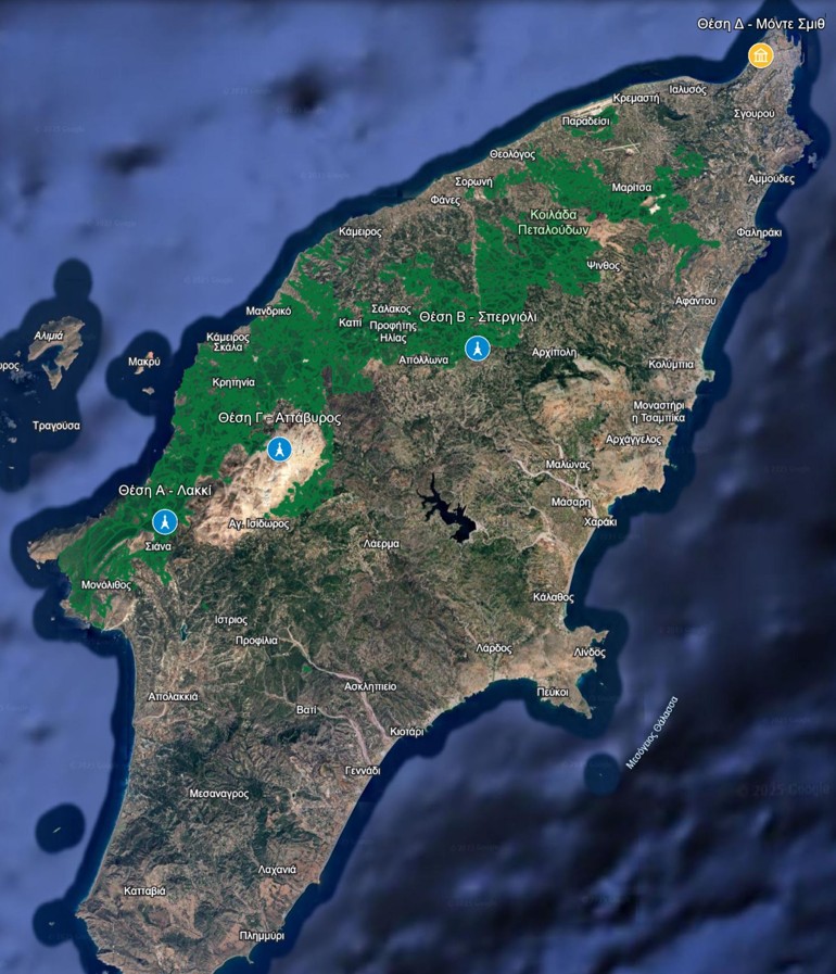 · στη θέση Σπεργιόλι, στον Προφήτη Ηλία, με οπτική κάλυψη έως Σάλακο–Καλαβάρδα–Φάνες–Σορωνή και ιδιαίτερη μέριμνα για Διμυλιά και Ελεούσα,