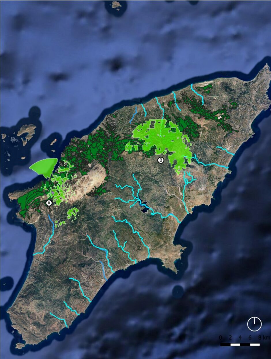 · στην περιοχή Λακκί–Στελιές, δίπλα στην Κυμισάλα.