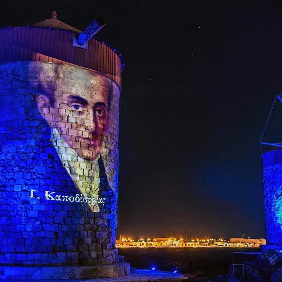 Με τα χρώματα της γαλανόλευκης φωτίστηκαν το Δημαρχιακό Μέγαρο και στο Εθνικό Θέατρο της Ρόδου, με αφορμή τα 200 χρόνια από την Ελληνική Επανάσταση.