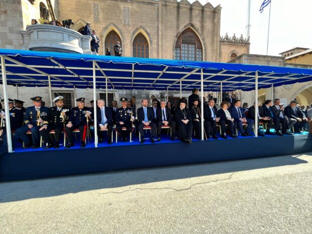Παρόντες οι τοπικές αρχές, ο περιφερειάρχης Νοτίου Αιγαίου, ο δήμαρχος Ρόδου, βουλευτές και υποψήφιοι βουλευτές, αντιδήμαρχοι, εκπρόσωποι των Σωμάτων ασφαλείας κ.λπ.