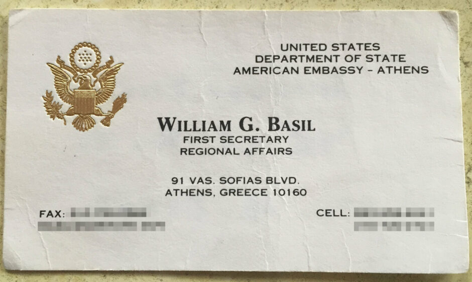 Η κάρτα του όταν υπηρετούσε στην πρεσβεία των ΗΠΑ στην Αθήνα