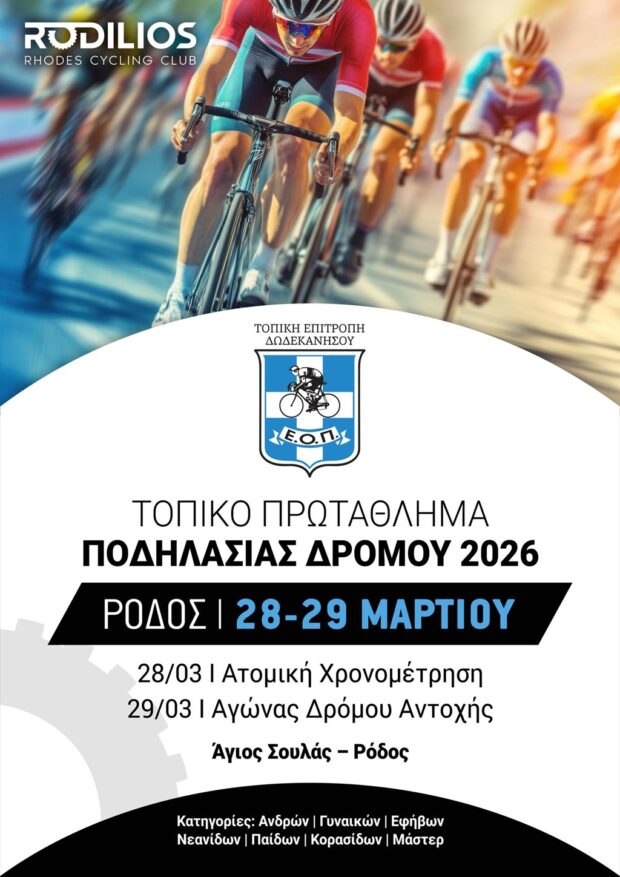 Μέσα στο σαββατοκύριακο 28 και 29 Μαρτίου θα διεξαχθεί το Τοπικό Πρωτάθλημα Δωδεκανήσου Ποδηλασίας Δρόμου Μεγάλων Κατηγοριών.