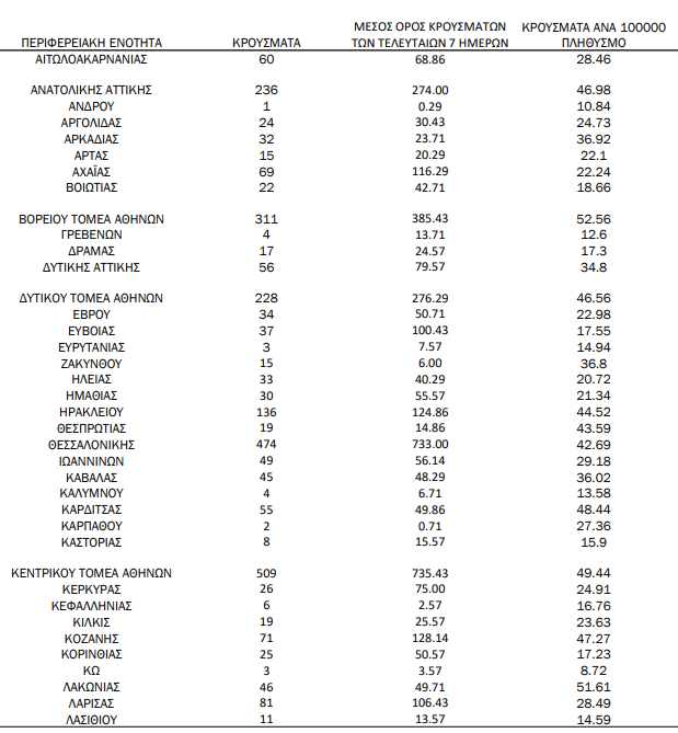 Για ακόμα μια μέρα, η Αττική κατακτά την αρνητική πρωτιά των κρουσμάτων, με τη Θεσσαλονίκη να ακολουθεί… από κοντά, τη στιγμή που αρκετές ακόμα περιοχές προκαλούν έντονη ανησυχία.