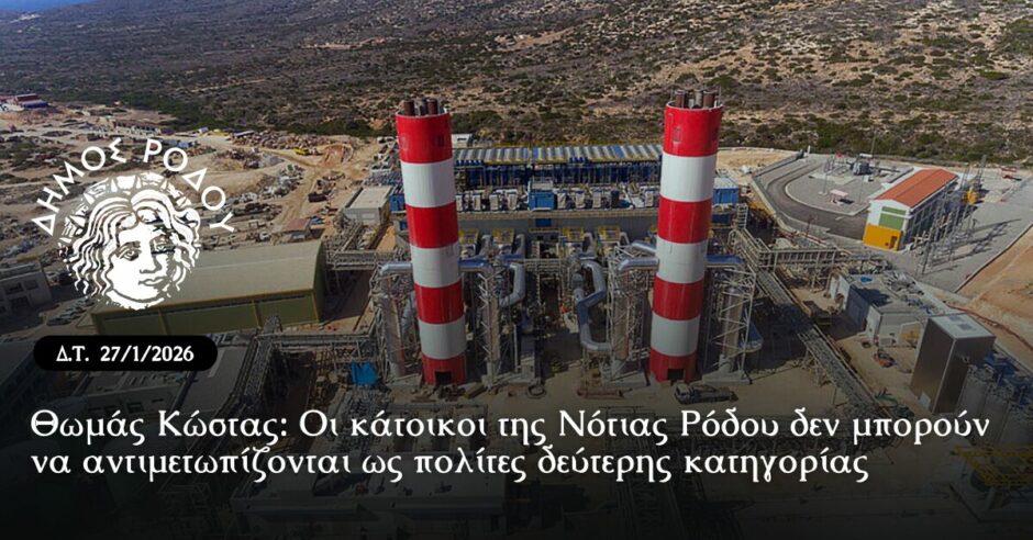 Η ηλεκτροδότηση είναι βασικό κοινωνικό αγαθό και προϋπόθεση ασφάλειας και αξιοπρέπειας. Οι κάτοικοι της Νότιας Ρόδου δεν μπορούν να αντιμετωπίζονται ως πολίτες δεύτερης κατηγορίας.