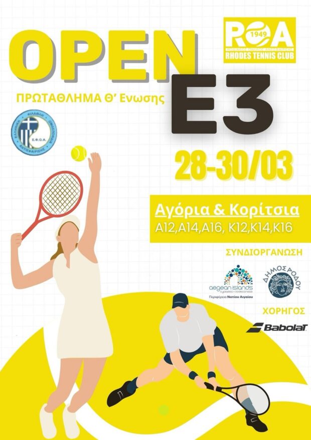 «Ο Ροδιακός Όμιλος Αντισφαίρισης (ΡΟΑ) φιλοξενεί από την Παρασκευή 28 Μαρτίου, έως και την Κυριακή 30 Μαρτίου, το τουρνουά Open E3 της Θ’ Ένωσης, στις εγκαταστάσεις του στη Ρόδο.