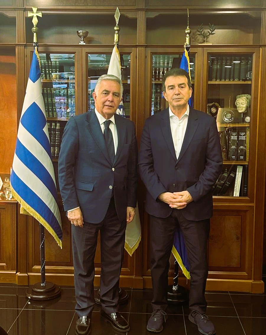 Συνάντηση εργασίας με τον Υπουργό Προστασίας του Πολίτη, κ. Μιχάλη Χρυσοχοΐδη είχε χθες, 26 Μαρτίου 2026, ο Κοσμήτορας της Βουλής και βουλευτής Δωδεκανήσου, Βασίλης Α. Υψηλάντης με επίκεντρο, μεταξύ άλλων, την ενίσχυση των αστυνομικών διευθύνσεων Δωδεκανήσου, την αποκατάσταση των κτηριακών υποδομών των κρατητηρίων Ρόδου και τη μεταστέγαση του Α.Τ. Λέρου.