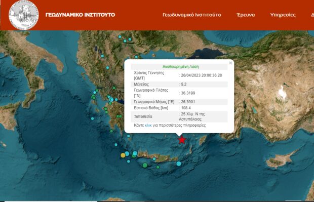 Ισχυρή σεισμική δόνηση σημειώθηκε το βράδυ της Τετάρτης (26/4) στα ανοιχτά της Αστυπάλαιας.
