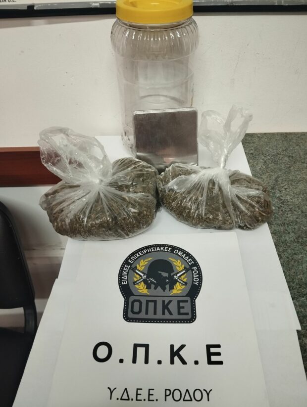 Χθες Κυριακή (27 Απριλίου 2025) το απόγευμα στη Ρόδο, στο πλαίσιο τακτικών-στοχευμένων ελέγχων από περιπολούντες αστυνομικούς της Ο.Π.Κ.Ε. εντοπίστηκε σε αύλειο χώρο σχολικής μονάδας σακίδιο που περιείχε δύο συσκευασίες κάνναβης συνολικού βάρους -207- γραμμαρίων και ζυγαριά ακριβείας.