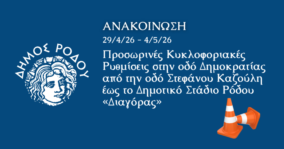 Προσωρινές κυκλοφοριακές ρυθμίσεις στην οδό Δημοκρατίας από την οδό Στεφάνου Καζούλη έως το Δημοτικό Στάδιο Ρόδου «Διαγόρας»