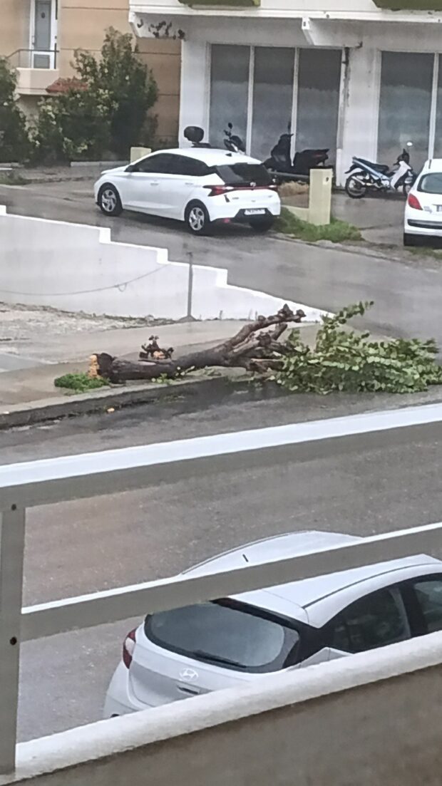 Σύμφωνα με όσα έγιναν γνωστά, έπεσε ένας στύλος δημοτικού φωτισμού στην Ανάληψη ενώ σημειώθηκαν και πτώσεις δέντρων σε κάποια σημεία της πόλης. Επίσης δέντρα έπεσαν στην περιοχή μεταξύ Υψενής και Λάρδου κι έκλεισαν τον δρόμο.