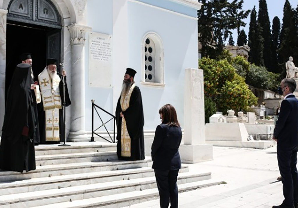 «Βρισκόμαστε στο πλευρό των συνανθρώπων μας που έχασαν αγαπημένα πρόσωπα, τους τείνουμε το χέρι» δήλωσε η Πρόεδρος της Δημοκρατίας, Κατερίνα Σακελλαροπούλου, μετά από την Επιμνημόσυνη Δέηση που τελέστηκε στον Ιερό Ναό του Α’ Νεκροταφείου Αθηνών, από τον Μακαριώτατο Αρχιεπίσκοπο Αθηνών και Πάσης Ελλάδος Ιερώνυμο, στη μνήμη των θυμάτων της πανδημίας στη χώρα μας. Παρών στην τελετή ήταν και ο δήμαρχος Αθηναίων Κώστας Μπακογιάννης.