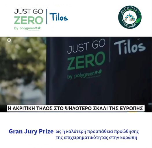 Το Μεγάλο Βραβείο της Ευρωπαϊκής Επιτροπής, “Grand Jury Price”, ως η καλύτερη προσπάθεια για την προώθηση της Επιχειρηματικότητας στην Ευρώπη και το Ευρωπαϊκό Βραβείο στην κατηγορία Υποστήριξης της Βιώσιμης Μετάβασης, φέτος πήγε στην υπέροχη Τήλο μας και το πρόγραμμα “Just go Zero”