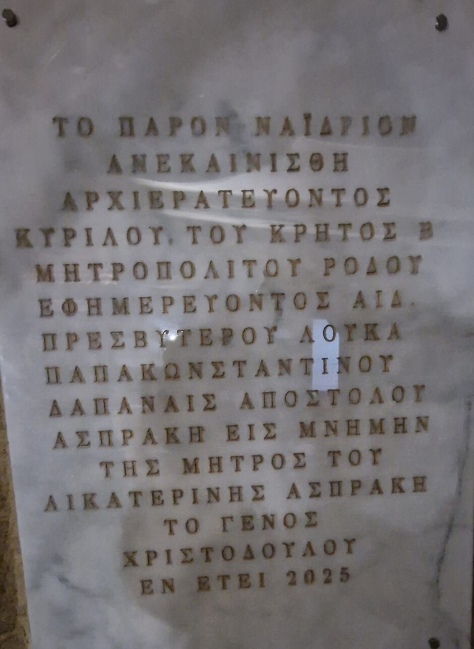 Το αποφάσισε το είπε, ενημέρωσε τους συνεργάτες του στην Περιφέρεια Νοτίου Αιγαίου και το έκανε πράξη. Ο λόγος για τον αναπληρωτή Περιφερειάρχη κ. Απόστολο Ασπράκη, που με δικούς του πόρους και προσπάθεια έκανε πράξη την ανακαίνιση του ιερού ναού του Αγίου Ανδρέα στο ίδρυμα που λειτουργεί στο Παραδείσι.