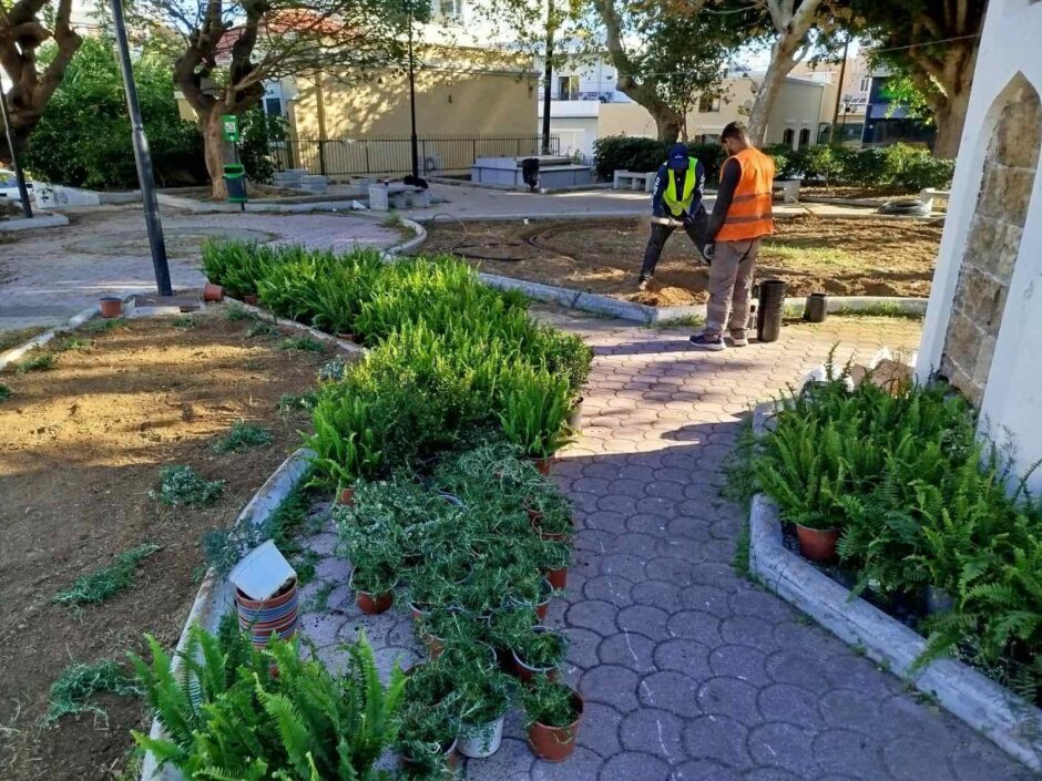 Ήδη έχει πραγματοποιηθεί εκτεταμένος καθαρισμός παρτεριών στην περιοχή των Αγίων Αποστόλων, ενώ στη Λεωφόρο Δημοκρατίας φυτεύονται μυρτιές, εκτός από το τμήμα μπροστά από το Πανεπιστήμιο Αιγαίου, όπου θα συμπληρωθούν οι υπάρχοντες ιβίσκοι. Στο σημείο αυτό αφαιρέθηκαν παλιοί, ασθενικοί και διασκορπισμένοι ιβίσκοι, ώστε να αντικατασταθούν με υγιή και ομοιόμορφα φυτά.