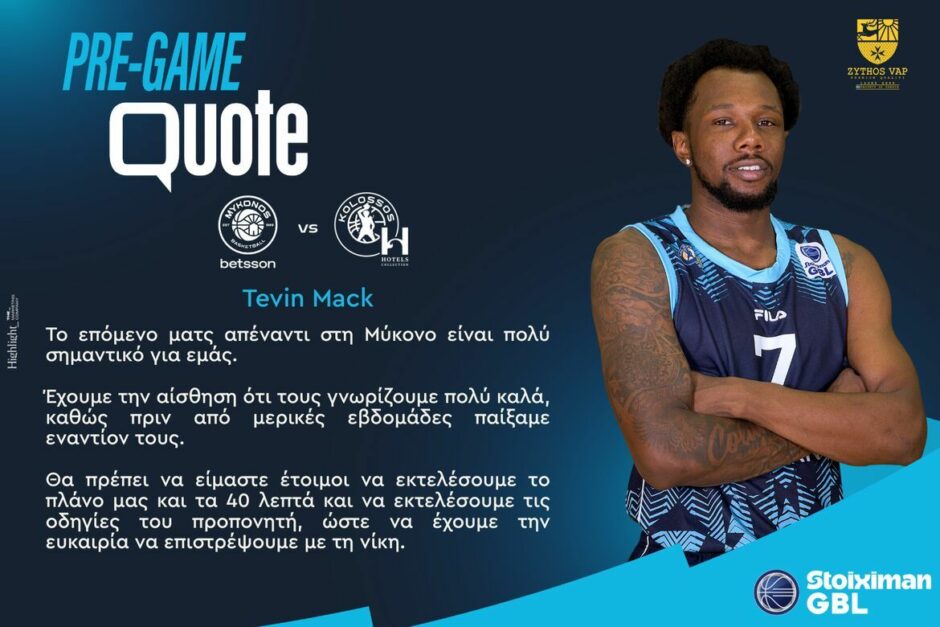 Την άποψή του για την εκτός έδρας αναμέτρηση του Κολοσσού απέναντι στη Μύκονο (Κυριακή 13:00), για τη 15η αγωνιστική της GBL, μοιράστηκε ο Τέβιν Μακ. Ο Αμερικανός αθλητής ανέφερε: ”Το ...
