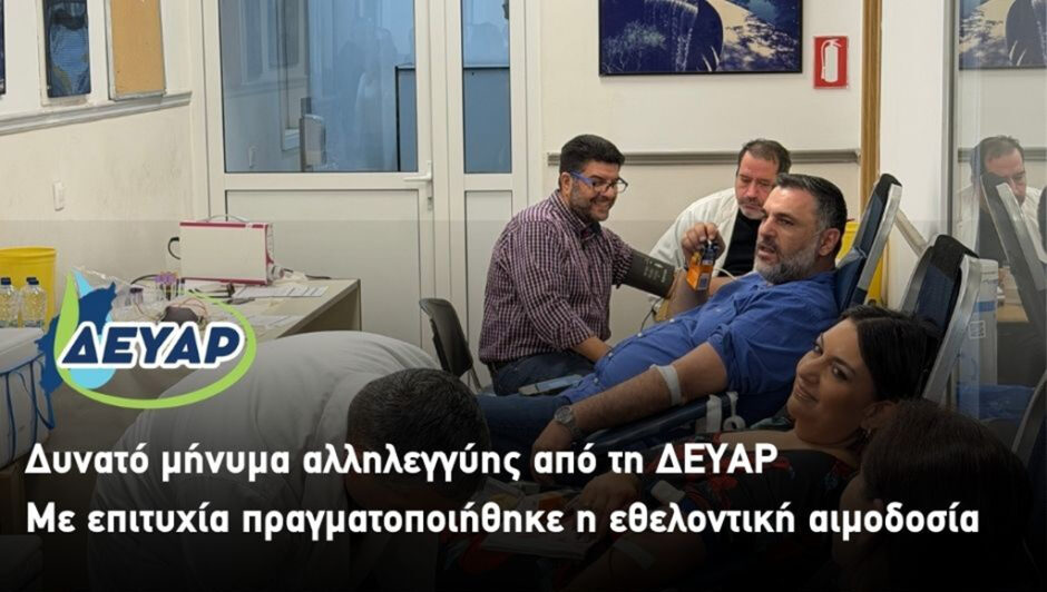 Με μεγάλη συμμετοχή και έντονο το αίσθημα κοινωνικής προσφοράς πραγματοποιήθηκε σήμερα, Τετάρτη 4 Μαρτίου 2026, η εθελοντική αιμοδοσία που συνδιοργάνωσε η ΔΕΥΑΡ στις εγκαταστάσεις της, ...